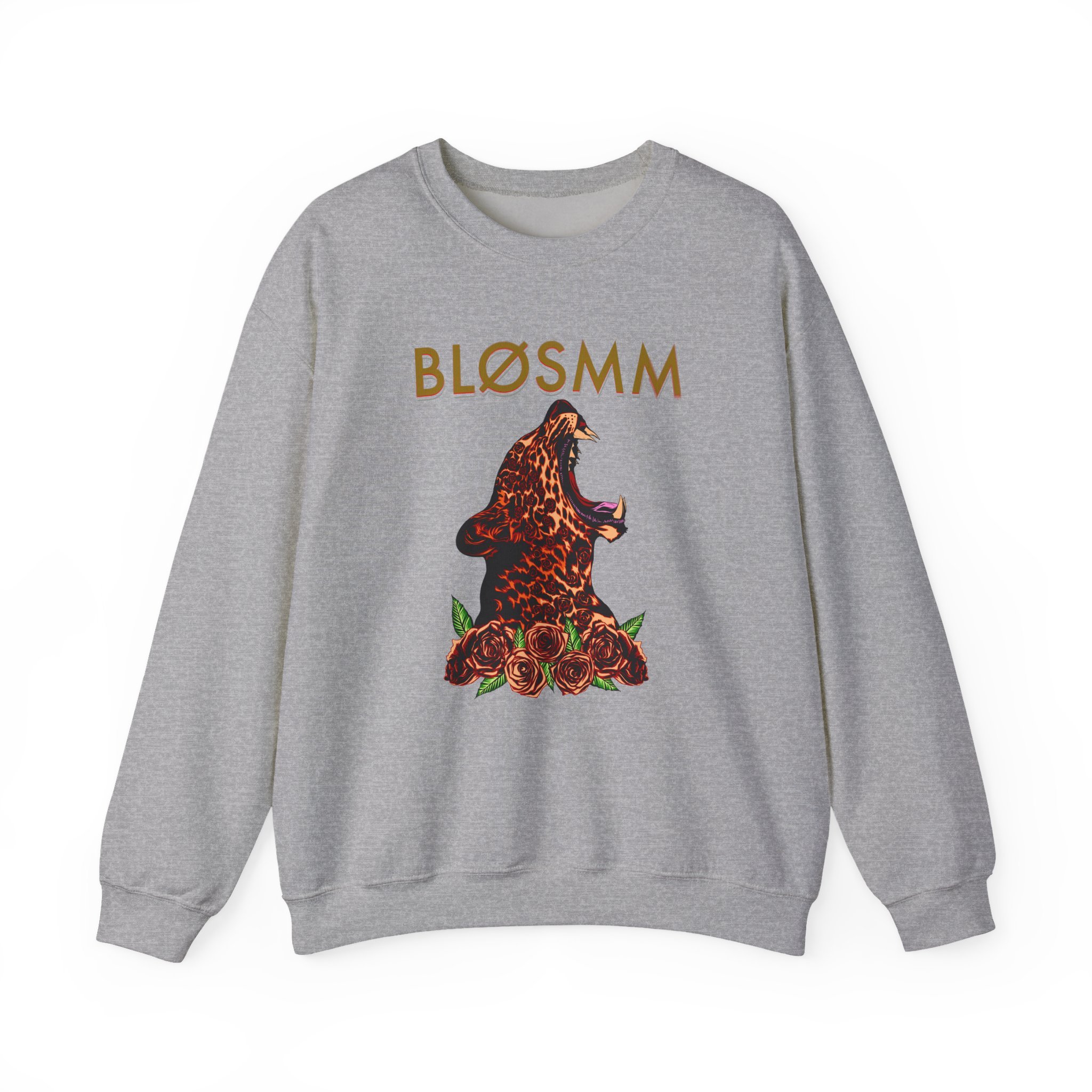 This cozy crewneck carries a quiet, ritual energy. Soft and substantial, the sweatshirt features a bold, hand-drawn bear silhouette rising above a cluster of dark roses, with a stylized BLOŠMM wordmark above. The print’s warm, earthy tones feel like late-afternoon light through woods and pair with the sweatshirt’s clean, off-white canvas. Wear it for slow mornings, long drives, or evenings around a low-fire conversation. The fit sits relaxed at the shoulders and waist, layering easily over tees or under a jacket, while the ribbed collar and cuffs hold their shape wash after wash. It’s for people who collect feeling—comfort, a touch of mystery, and something that reads both handcrafted and dependable.